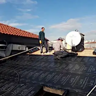 Oldukça eskimiş olan çatı malzemelerini sökmek ilk işimiz oldu. Çatıda çanak, kablolar, baca gibi öğelere zarar vermeden bu işlemi gerçekleştirdik. Beton tabakada gerekli onarımları sağladık. Üstüne ise çatının su yalıtımı işlemini sağlaması amacıyla membran malzemeyi, yapıştırma teknikleriyle döşedik. Üstüne ise arduvaz malzemeyi gerekli yalıtımları tam olarak yerine getirmesini gözeterek, kusursuz bir şekilde döşedik.