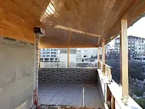 Öncelikle teras alanının çatısını oluşturduk. Kullandığımız çıta vb malzemeleri çakarak, göze de hoş görünen bir çatı oluşturduk. Kağıthane çatı ustası ekibimiz, oluşturduğu teras çatısını, membran vb malzemelerle kaplayarak, su yalıtımı için gerekli işlemleri gerçekleştirdi. Yalıtım içi gerekli kaplama işlemlerinin ardından, pergole malzememizi getirerek, bu malzemelerin döşenmesine başladık. Binaya temas eden alanlarda pergole ile duvar arasında kalan kısma ısı yalıtım malzemesi uyguladık. Binanın mimarisine ve dekoratif kaygılara uygun olarak seçtiğimiz pergoleyi döşedik. Diğer işlemleri de yaparak işimizi tamamladık ve teslim ettik.